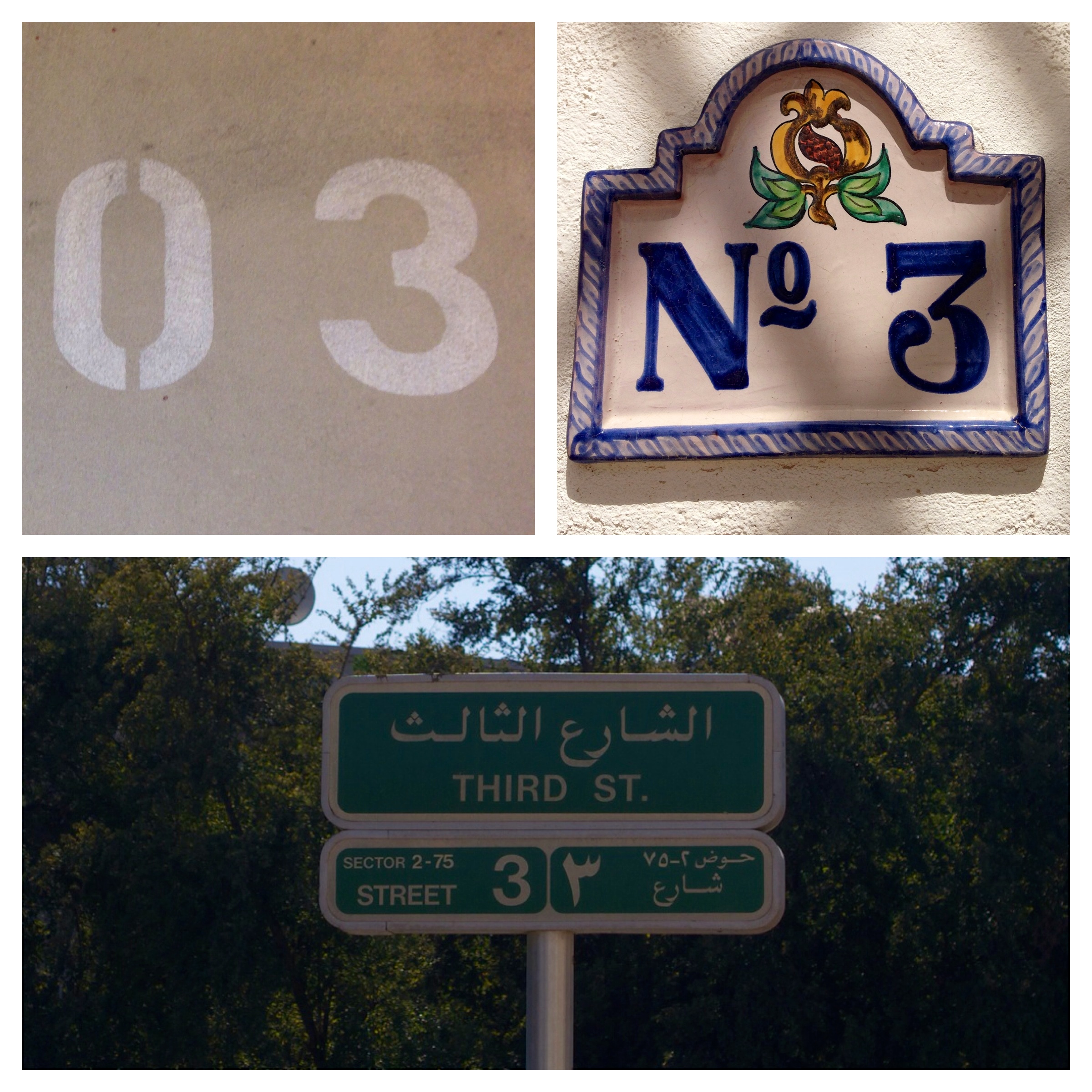 Ooops! Playing catch up again from last weeks photo challenge but here is my attempt at ‘Threes’. When I first read this challenge at the beginning of last week, I thought I would be clever and attempt a literal interpretation on ‘Threes’ by taking three photos of the number three around and about in Abu Dhabi but it turned out to be quite lame, as you can see below.