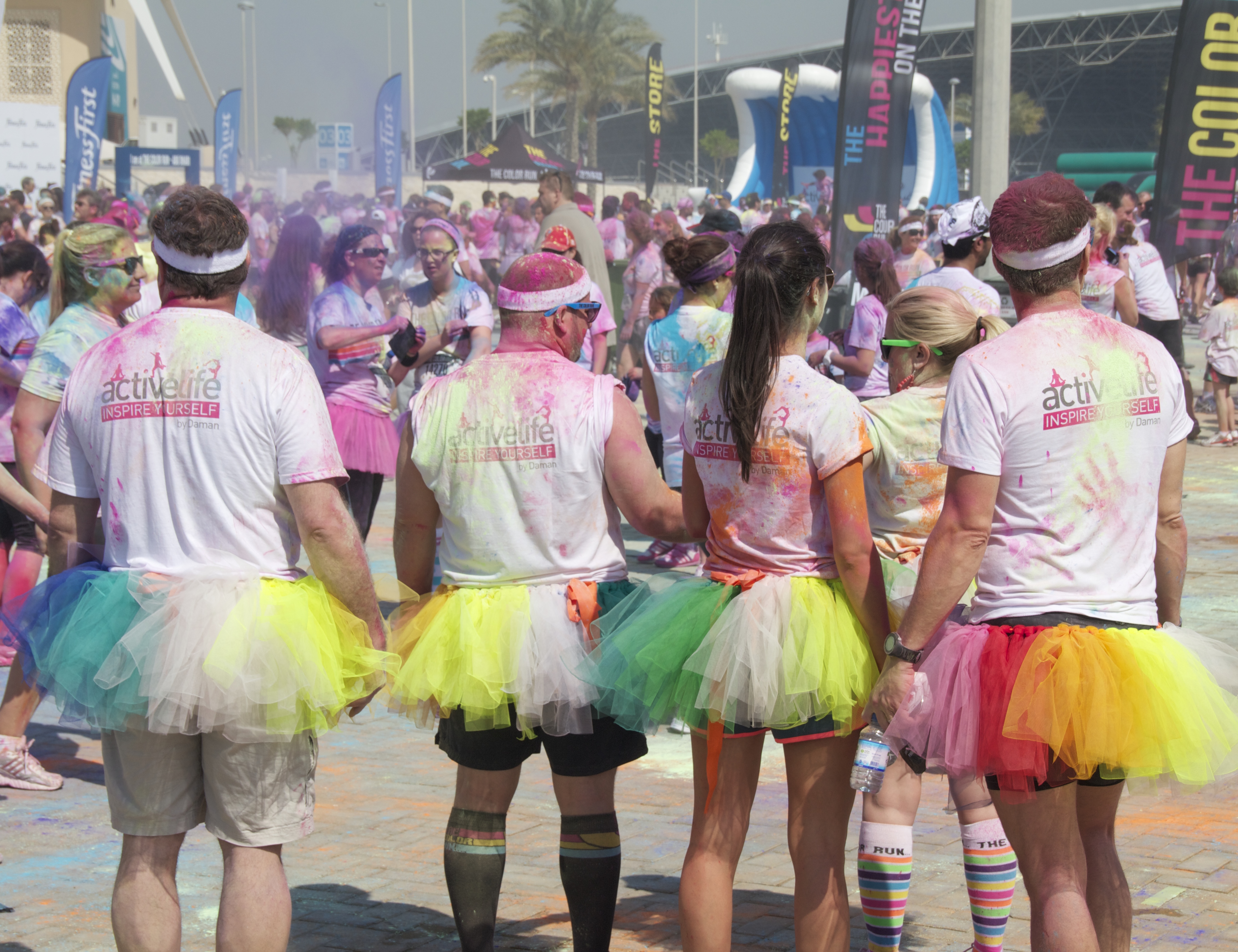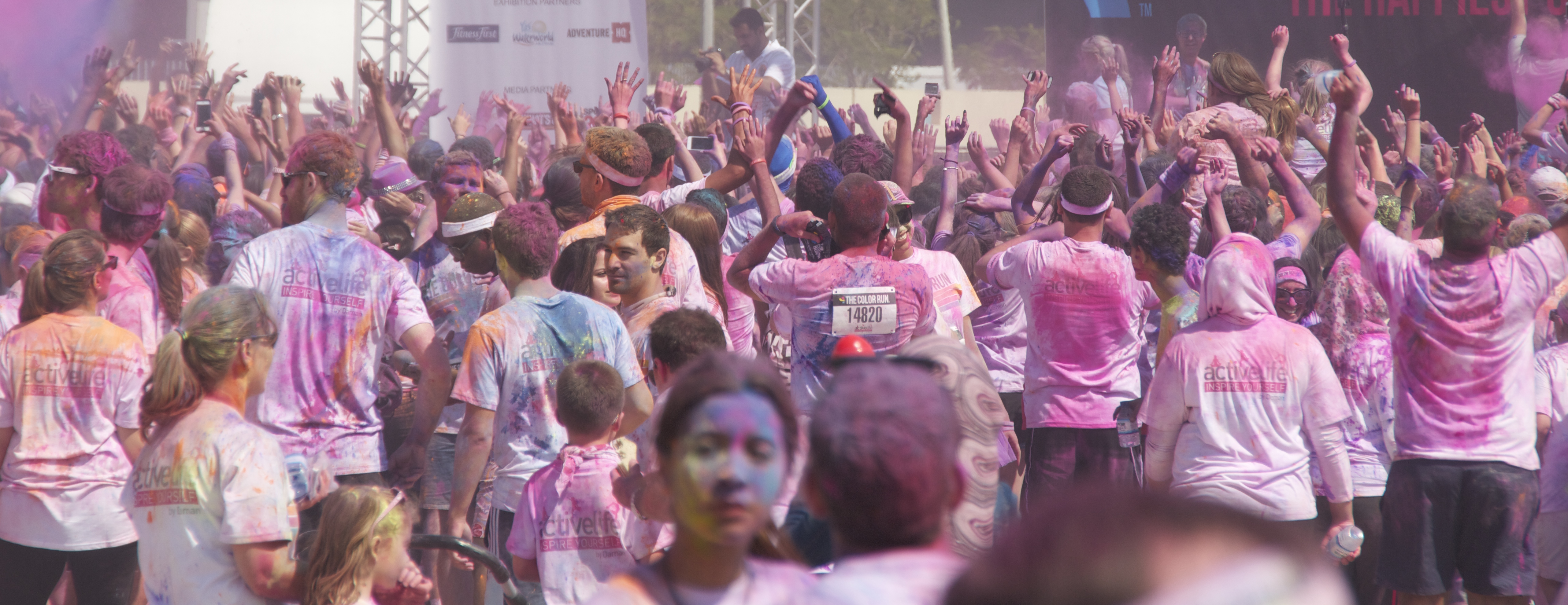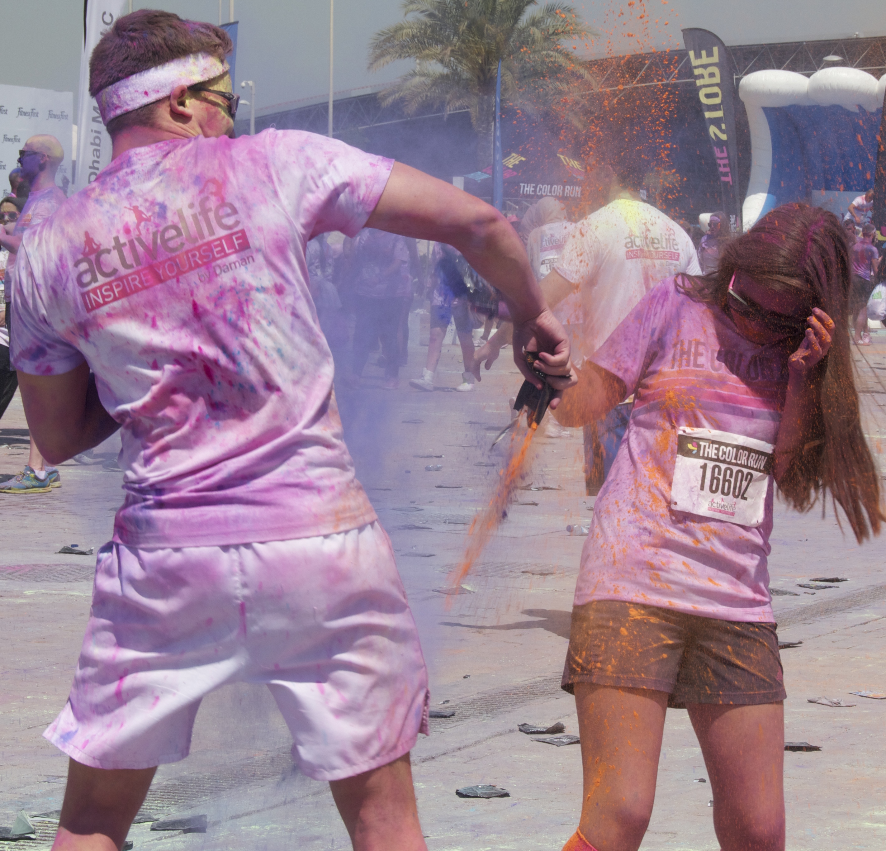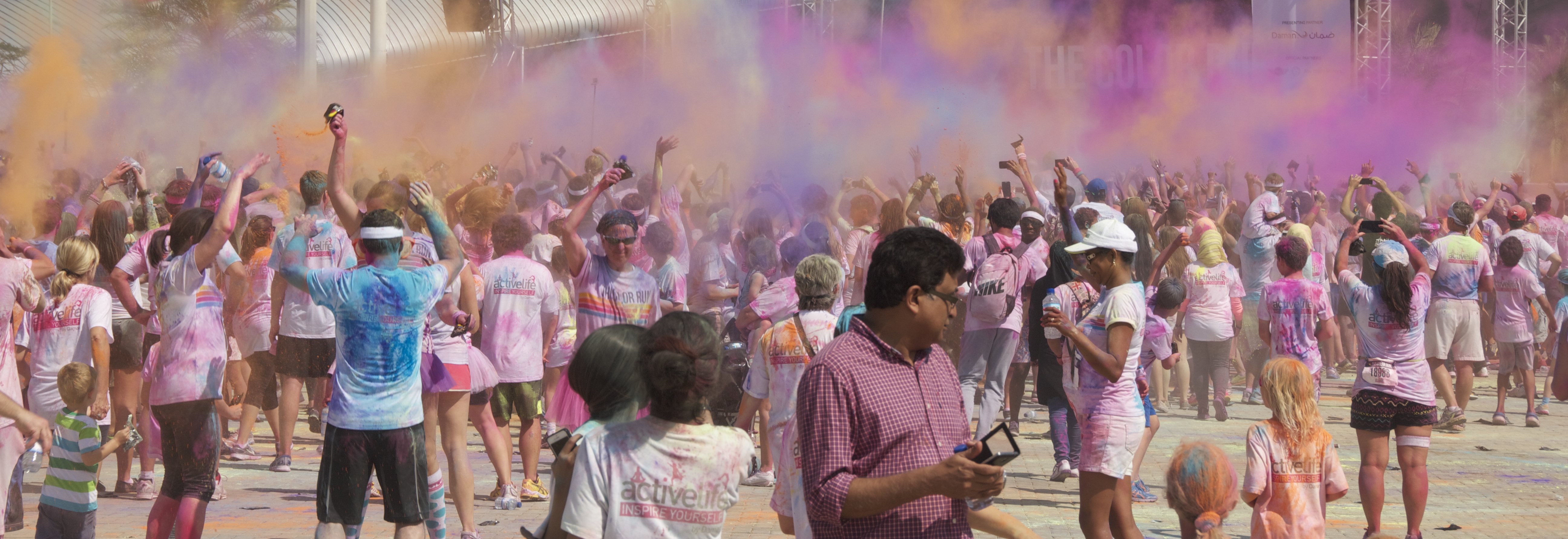 Eight thousand participants, aged from one to one hundred, took part in the event, including Olympic gold medalist Dame Kelly Holmes as well as the teenager and her friends. Yellow, Red, Blue and Pink colour dust was showered on the runners in the colour zones located around the track at each kilometre. The charitable event will donate $1 from each entry fee to local charity, Operation Smile UAE.
