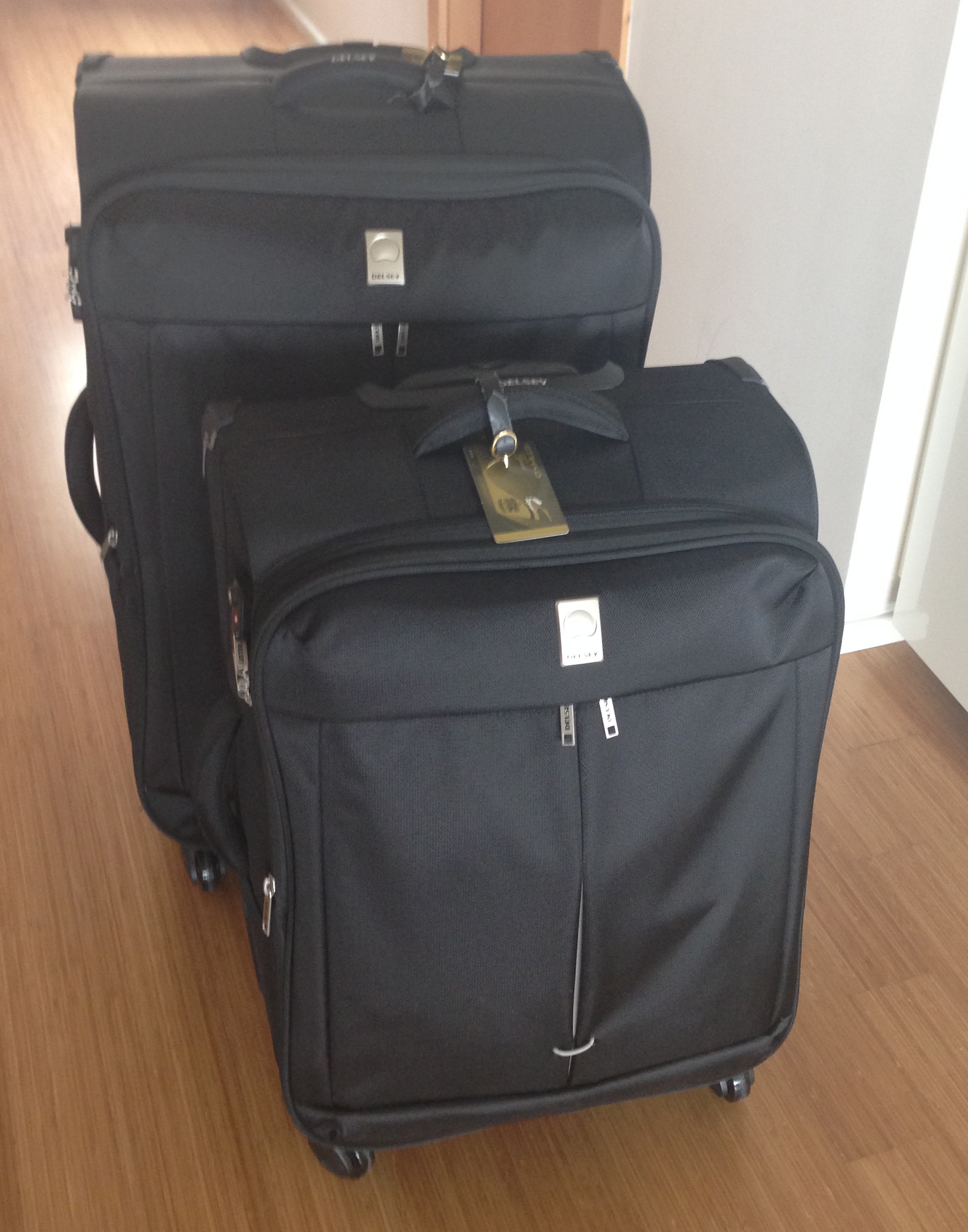 Two of the five cases packed and ready to go