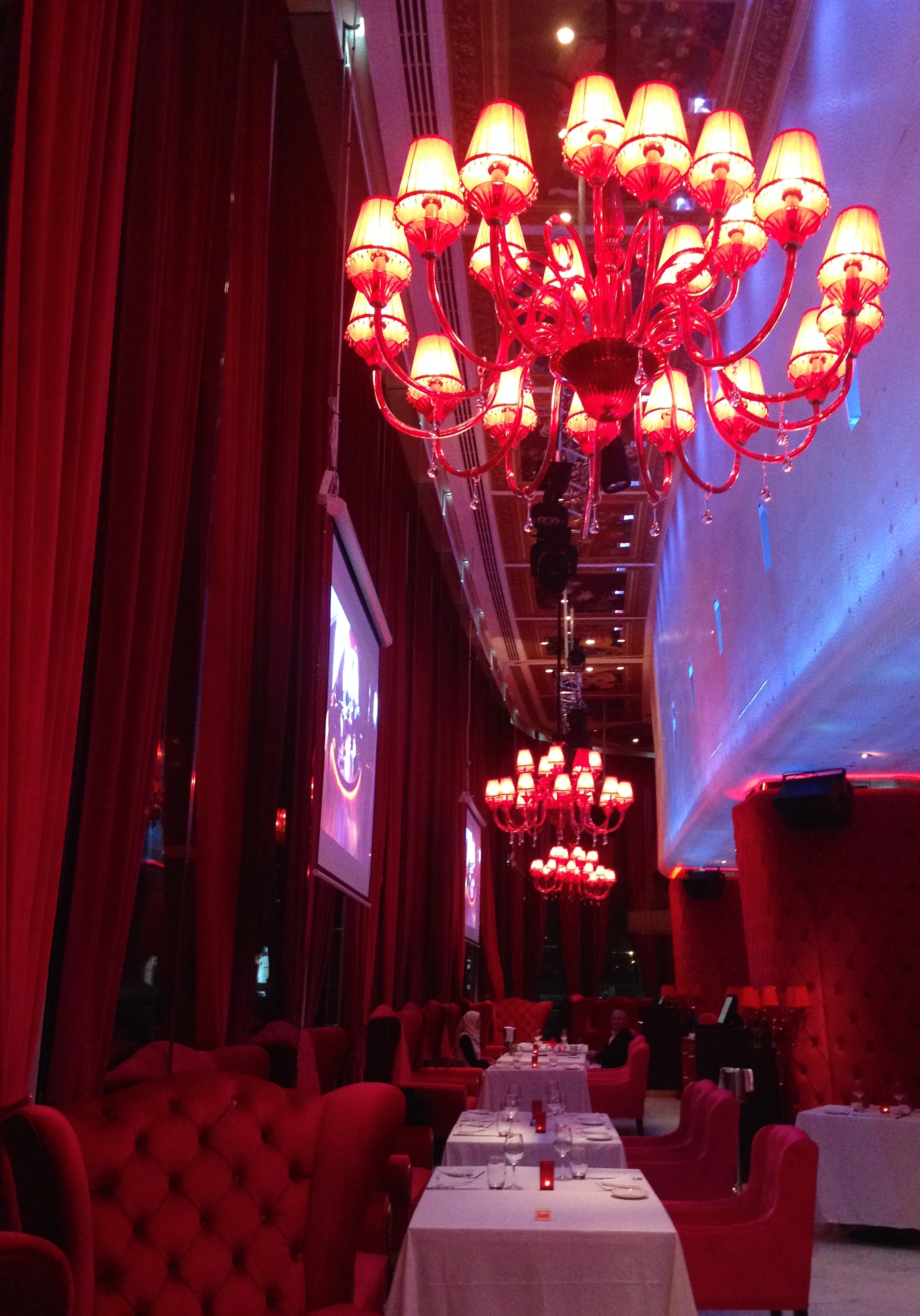 As expected the Burlesque restaurant and lounge fully respects this regions cultural values and is more about the look of recreating a glamorous Victorian style boudoir. Rich red and purple velvet tones, huge red deep-button armchairs, oversized chandeliers hang alongside large framed antique portraits capturing a past era and there was not a nipple tassel in site. The restaurant/lounge is actually the refurbishment of the stark white Nautilus seafood restaurant that was there previously and the contrast couldn’t be more extreme.