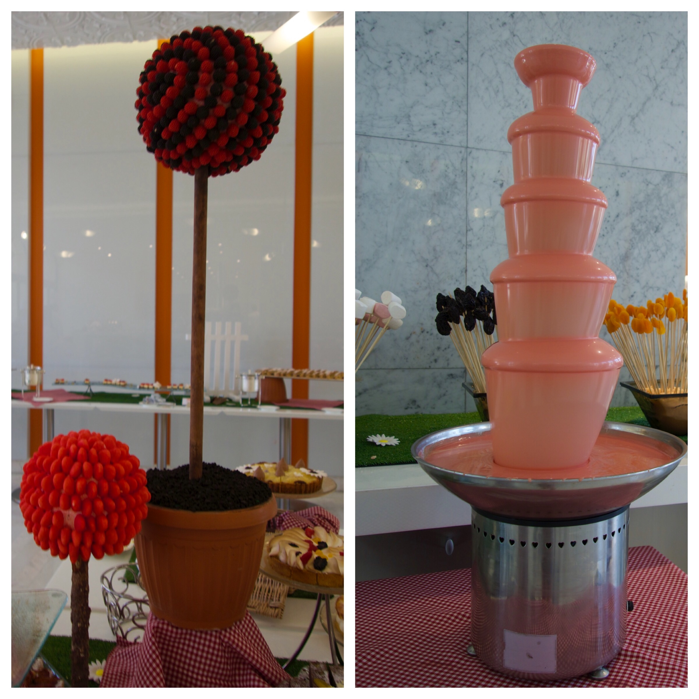 There was every conceivable type of dessert you could ever think of from macaroons to donuts, waffles, popcorn, brownies, cheesecake, mousses, fruit, a pink chocolate fountain, a whole host of ice-cream flavours and sorbets.