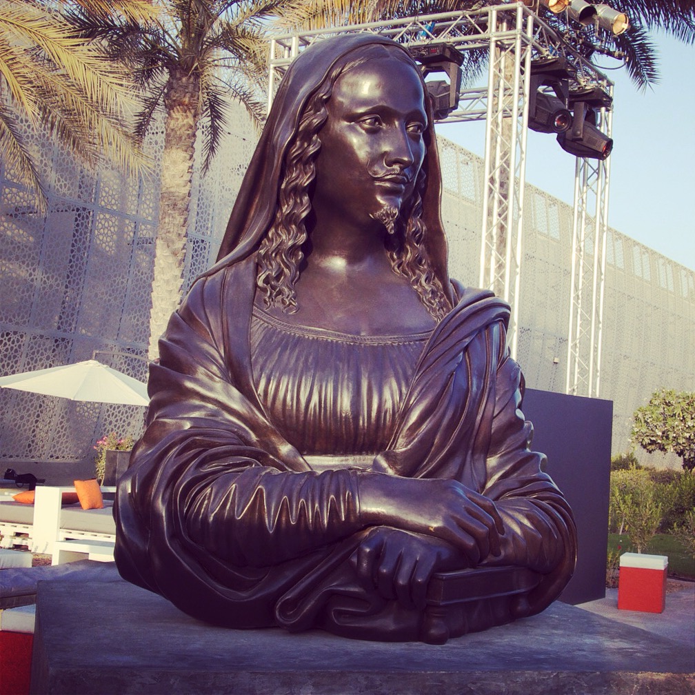 A bust of the Mona Lisa outside the Abu Dhabi Art Fair