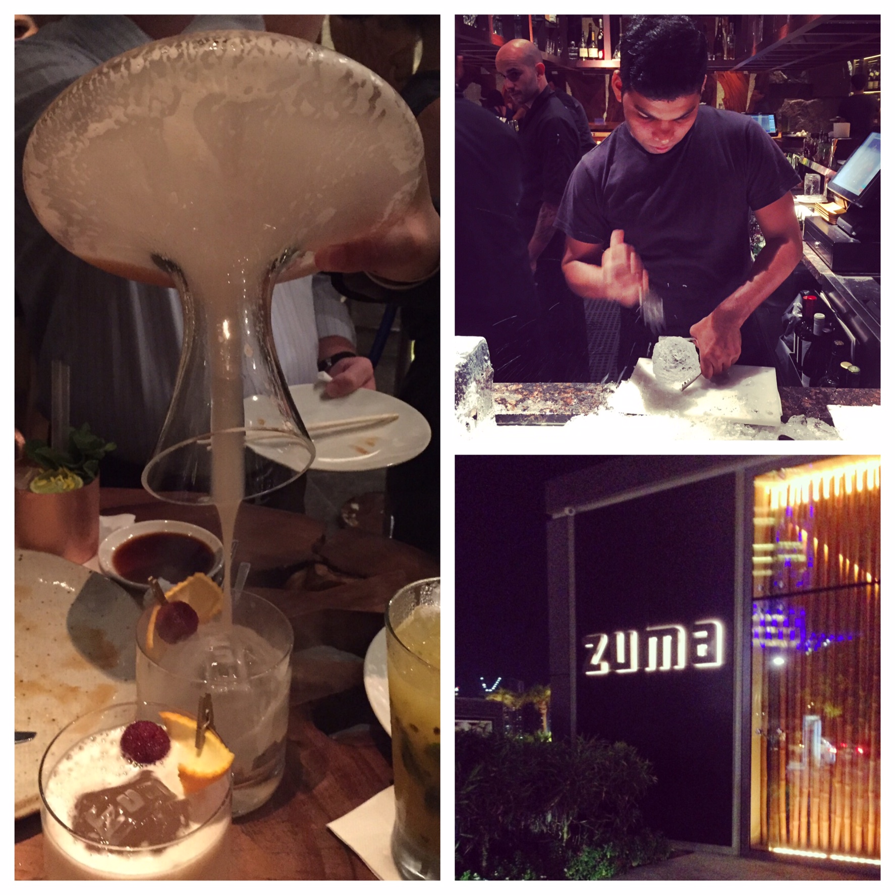On to dessert and a popular food blogger put her reputation on the line raving about the Green Tea and Banana cake served with coconut ice cream and toffee sauce and she was not exaggerating, it was absolutely delicious. We were also served the signature Zuma emblazoned Chocolate fondant and the tasty Green Chilli Marinated Pineapple and joined by executive Sous Chef Marco Fico. Alongside its signature dishes, Zuma is also well-known for its impressive ice cubes. Oversized ice balls imprinted with the restaurant’s name are carved fresh to order from a mammoth ice block at the bar and fill the tumblers to ensure that drinks are cold from start to finish, as well as looking spectacular.
