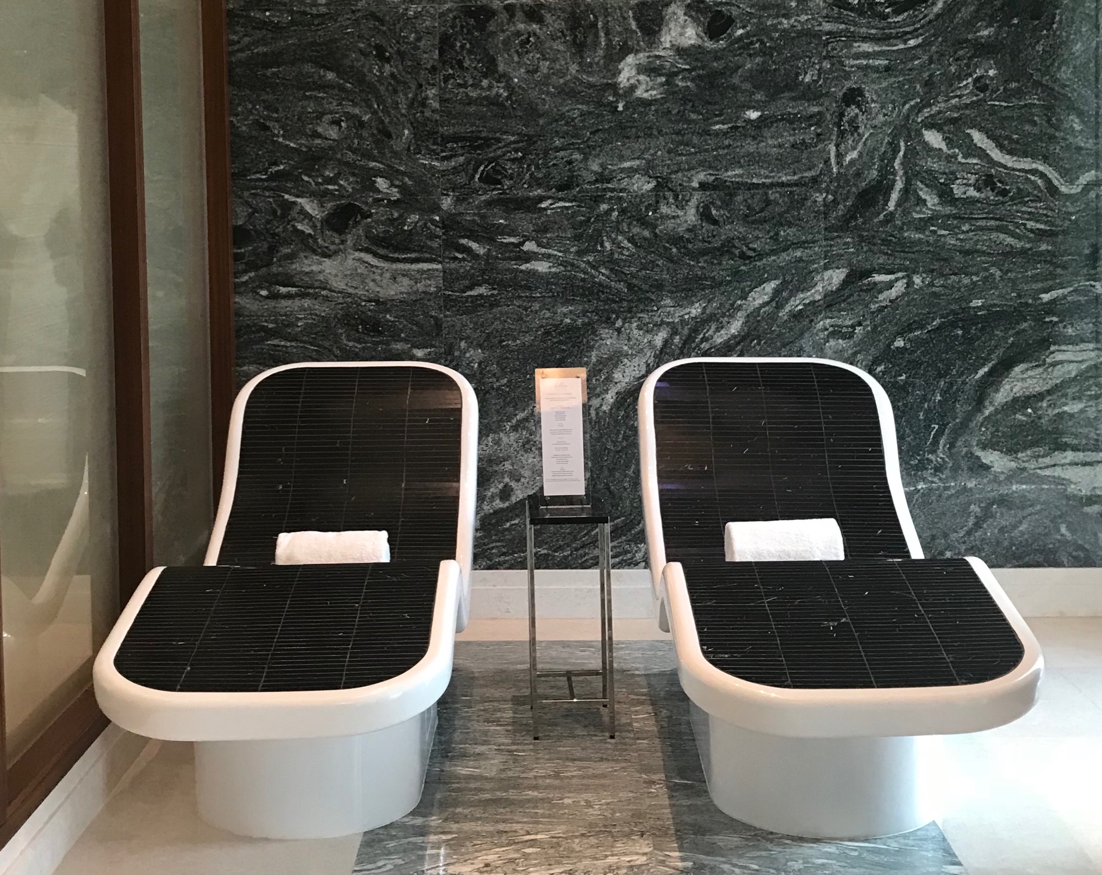 The spacious spa is a light-filled place of serenity with water views, the ultimate place to spend time relaxing in the capital. There are eight treatment rooms all with private showers as well as the couples suite, where we were located that has a jacuzzi. A definite bonus are the therapeutic relaxation areas, both the seperate male and female areas mirror each other, offering guests a large heated hydro pool, sauna, ice fountain, heated lounge chairs with waterfront views and a Moroccan hammam.