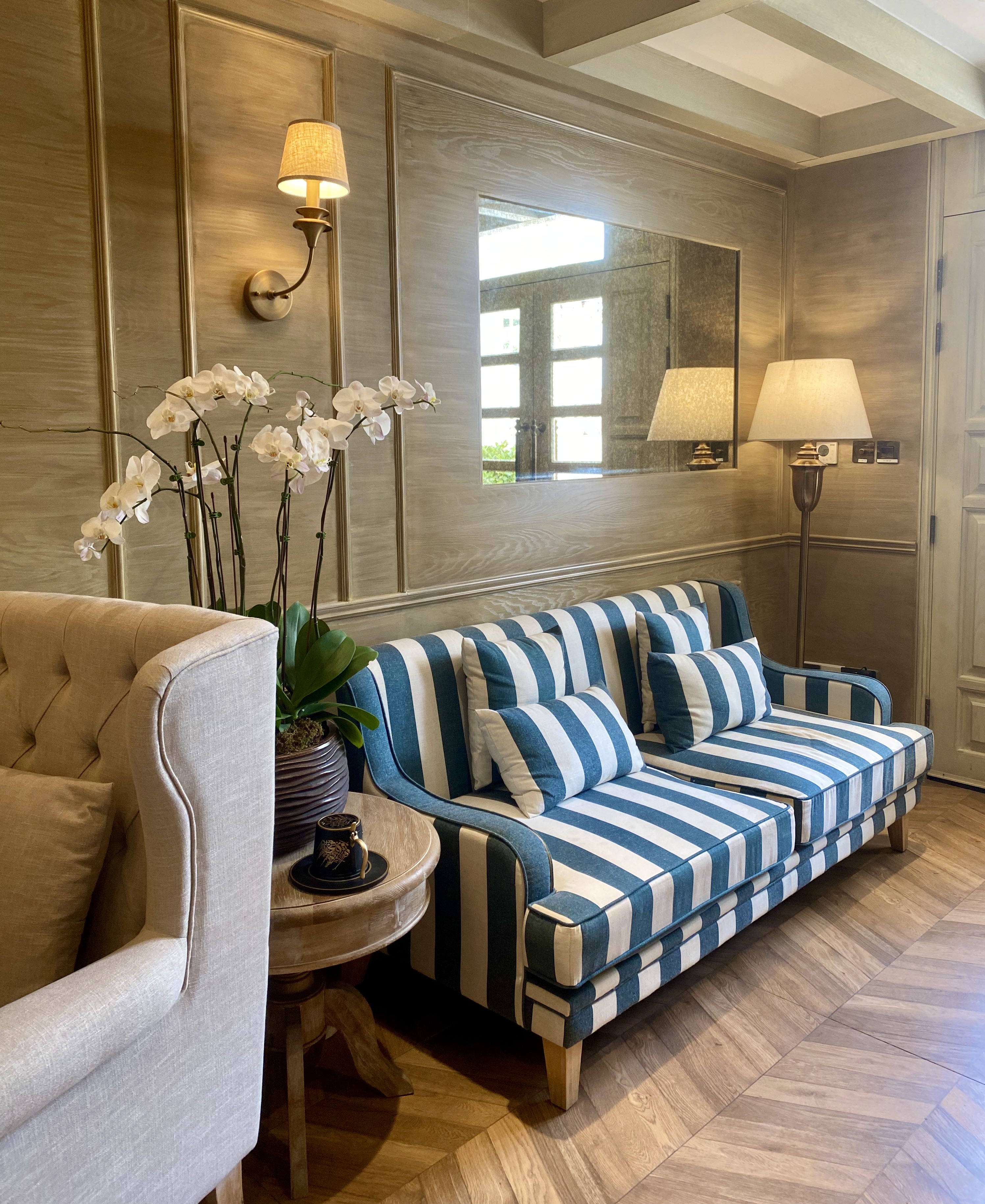 Fully committed to its Long Island aesthetic, Montauk Boutique Café in Al Bateen is a three-story cafe that takes inspiration from upmarket Hamptons beach houses. The elegant space has bold beach style stripy cushioned seating, light wood furniture and rope features, the iconic Montauk lighthouse even features on its logo.