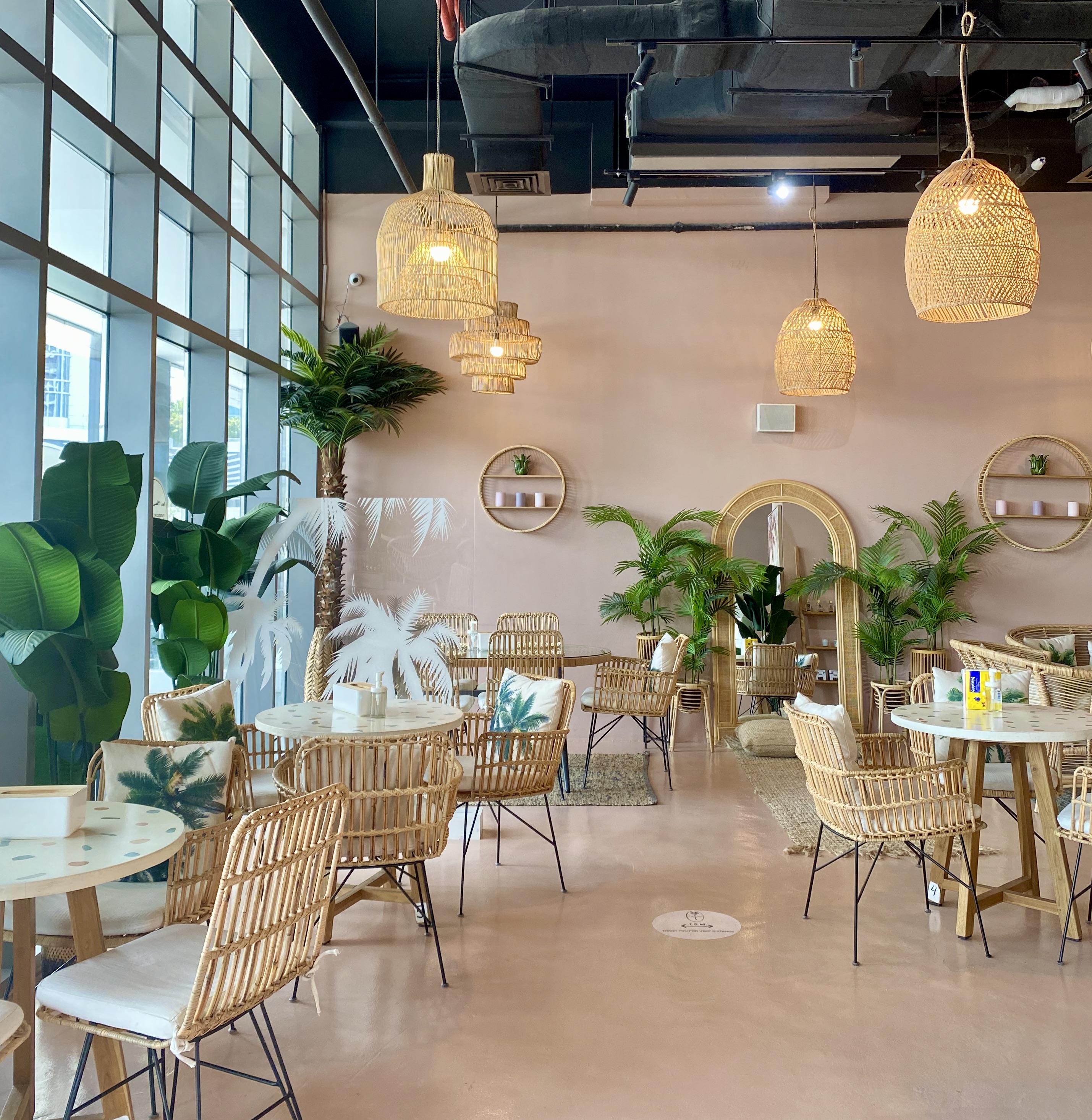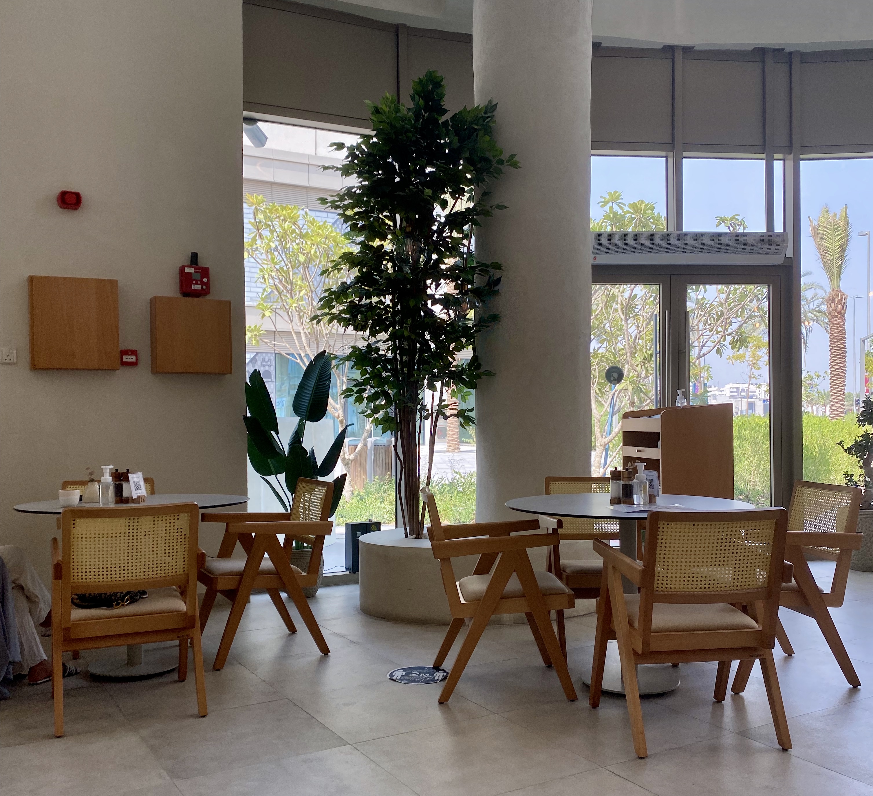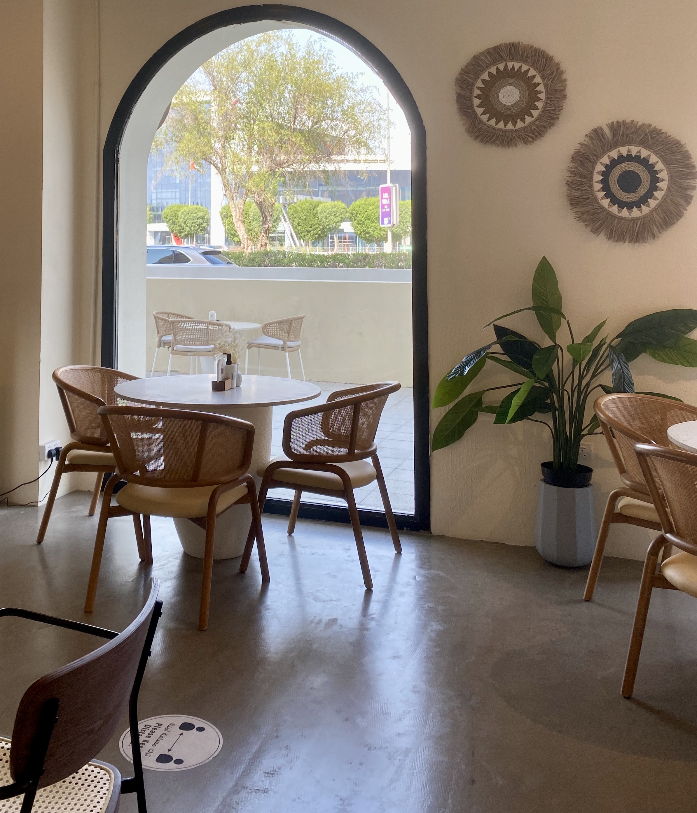 Shall we meet under the palms’ is this quaint little cafe’s slogan and the answer is simply yes because it’s hard not too. Located near ADNEC, Palms Cafe is tucked away at the back of a mini mall so not that obvious. Pink walls, faux greenery, palm embossed textiles and a colourful feature wallace are complemented by rattan furniture and accessories. There’s a decent sized outdoor area with seating and fans.
