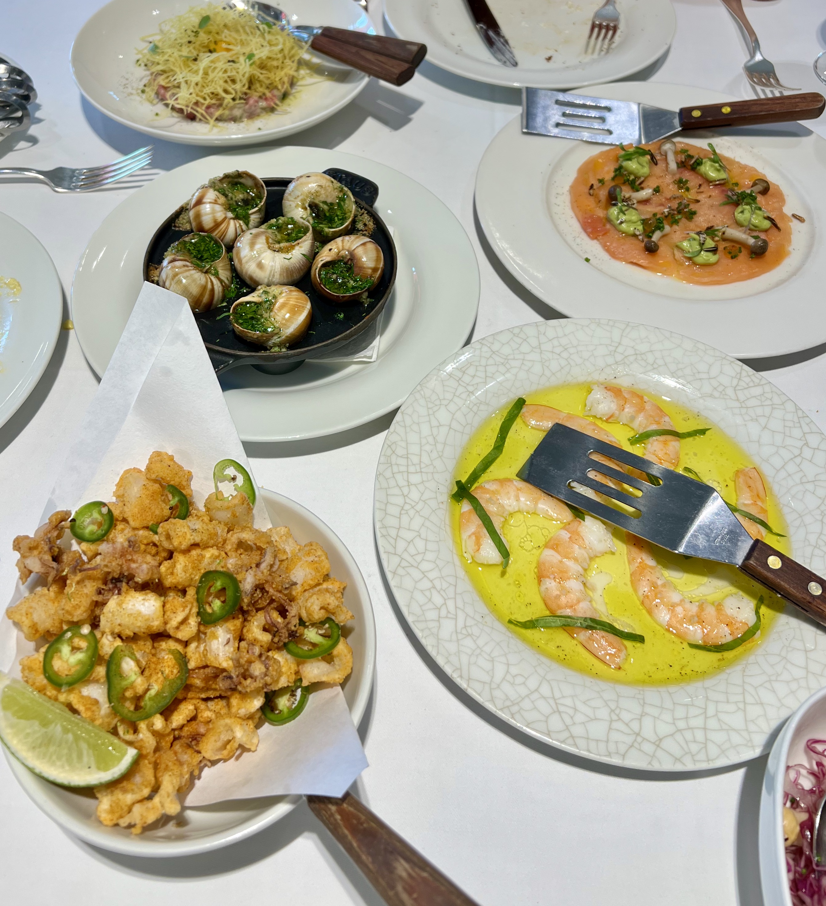 The restaurant is throwing things back to a traditional Sunday brunch, a stylish leisurely affair served in a chic Parisian style setting. Celebrating LPM’s sharing concept, the brunch menu offers classic, rich dishes influenced by cuisine from the South of France and Italy paired with hand crafted mocktails, cocktails and premium beverages. Unlimited starters are served to the table with the highlight for us being the delicious burrata and tomato toast. Other notable dishes included snails with garlic butter, soft scrambled eggs, salmon carpaccio and crispy squid with paprika & green chili.